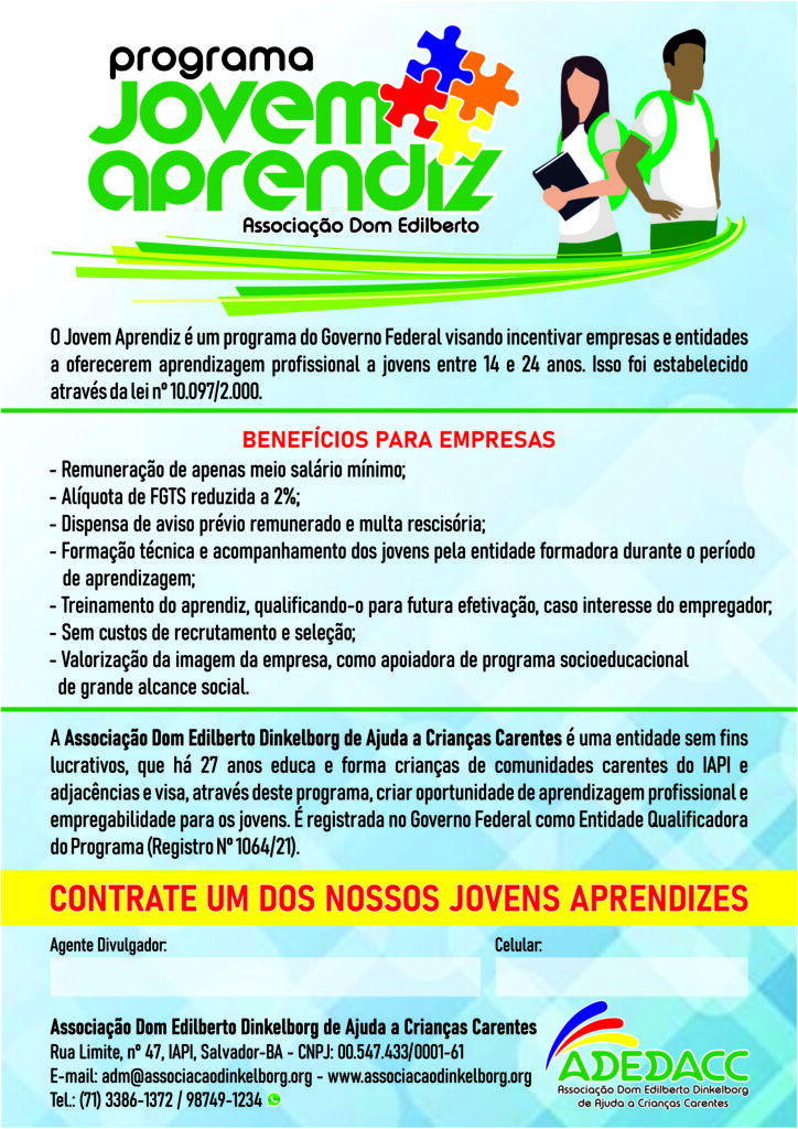 Venha, forme uma parceria conosco! Seja você também um agente transformador.